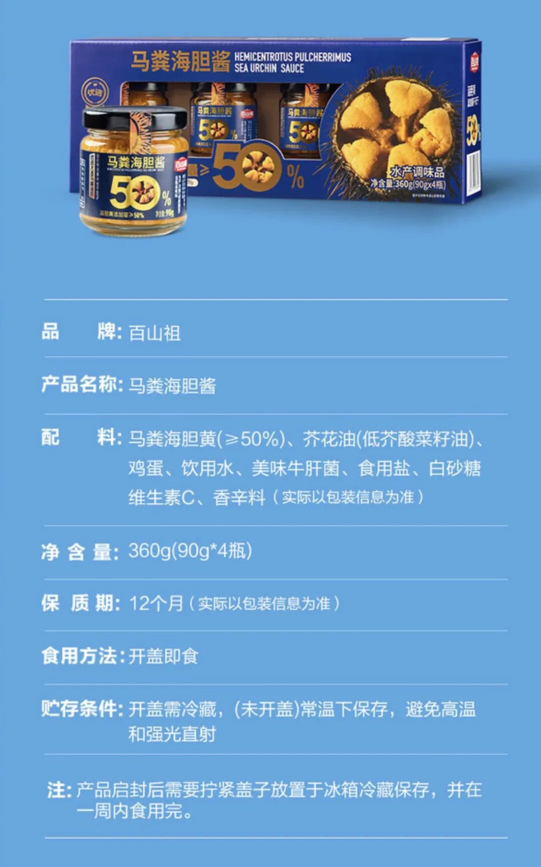 与百山祖品牌在山姆货架的上一款爆品酱比拟,原料从菌菇逾越到水产,但换取的是,两者都将高端食材拉进了大家视线,也将价钱“打了下来”:马粪海胆酱组合装69.9元/4瓶,单价17.48元。
